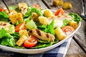 Sałatka Cezar z grzankami, jaja przepiórcze, pomidorkami i grillowanym kurczakiem