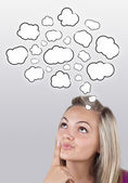 młoda dziewczyna patrząc na typ wyobrażenie znak