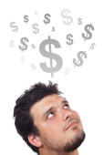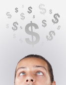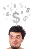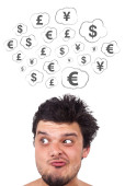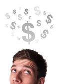 młodych osób głowę patrząc na biznes ikony i obrazy