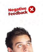 młody głowę patrząc na znaki wysyłki i zamówienia