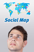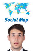 młody głowę patrząc na społeczne typ ikony i znaki