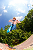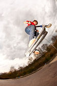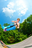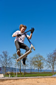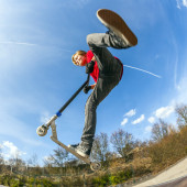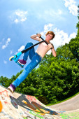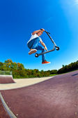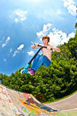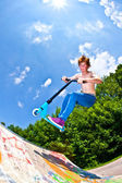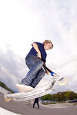 Boy with scooter is going airborne