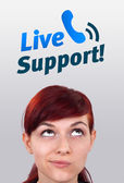 młody głowę patrząc na wsparcie kontakt typu ikony i znaki