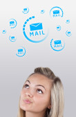 młody głowę patrząc na wsparcie kontakt typu ikony i znaki