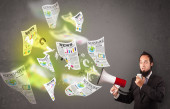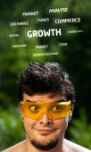 młodych osób głowę patrząc na biznes ikony i obrazy