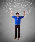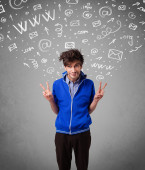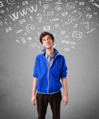 młody głowę patrząc na internet typu ikony