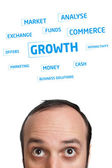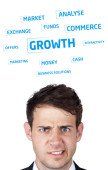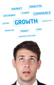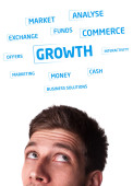 młodych osób głowę patrząc na biznes ikony i obrazy