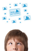 młody głowę patrząc na społeczne typ ikony i znaki