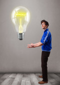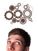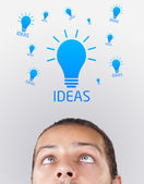 młody człowiek patrząc na typ wyobrażenie znak