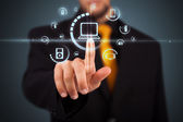 Biznesmen wciskający nowoczesne przyciski typu high tech
