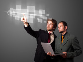 Biznesmen wciskający nowoczesne przyciski typu high tech