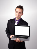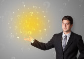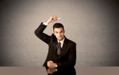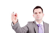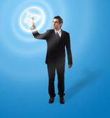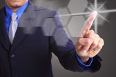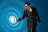Biznesmen wciskający nowoczesne przyciski typu high tech