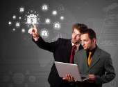 biznesmen naciskając nowoczesny typ przycisków