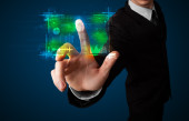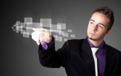 biznesmen naciskając nowoczesny typ społecznego ikony
