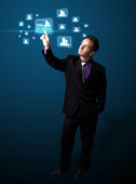 biznesmen naciskając nowoczesny typ społecznego ikony