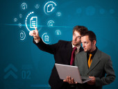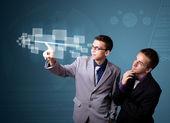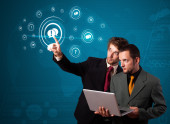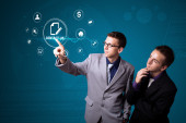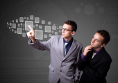 Zdjęcie "Biznesmen wciskający wirtualne media typu buttons" może być wykorzystywane do celów osobistych i komercyjnych zgodnie z warunkami zakupionej licencji Royalty-free. Obraz jest dostępny do pobrania w jakości wysokiej rozdzielczości do 5760x3840.