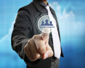 biznesmen naciskając nowoczesny typ społecznego ikony