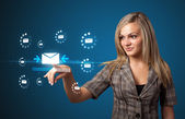 Businesswoman pressing virtual messaging type of icons