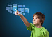 Biznesmen wciskający nowoczesne przyciski typu high tech