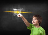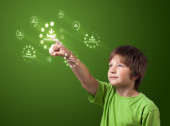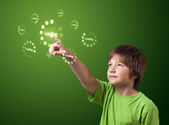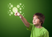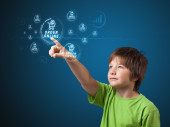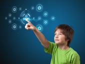Biznesmen wciskający nowoczesne przyciski typu high tech