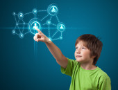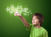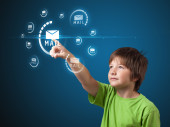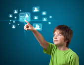 biznesmen naciskając typu prostego przycisków start