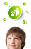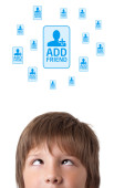 biznesmen naciskając nowoczesny typ społecznego ikony