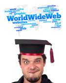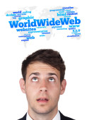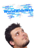 młody głowę patrząc na internet typu ikony
