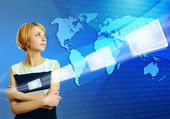 Zdjęcie "Businesswoman pressing virtual messaging type of icons" może być wykorzystywane do celów osobistych i komercyjnych zgodnie z warunkami zakupionej licencji Royalty-free. Obraz jest dostępny do pobrania w jakości wysokiej rozdzielczości do 5760x3840.