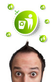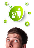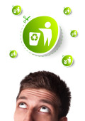 Zdjęcie "młody głowę patrząc na eko zielony znak" może być wykorzystywane do celów osobistych i komercyjnych zgodnie z warunkami zakupionej licencji Royalty-free. Obraz jest dostępny do pobrania w jakości wysokiej rozdzielczości do 5760x3840.