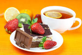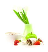 cappuccino w Puchar w kształcie serca, wiśni i strawberr
