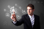 biznesmen naciskając typu prostego przycisków start
