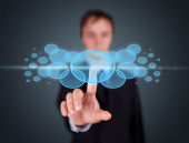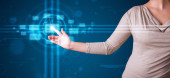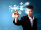Businesswoman pressing modern social type of icons