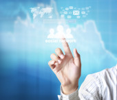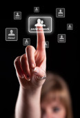 Businesswoman pressing modern social type of icons