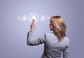 Businesswoman pressing modern social type of icons