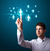 Businesswoman pressing modern social type of icons