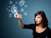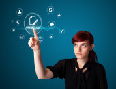 Businesswoman pressing modern social type of icons