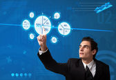 biznesmen naciskając nowoczesny typ przycisków
