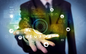 biznesmen naciskając nowoczesny typ społecznego ikony