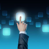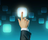 Biznesmen wciskający nowoczesne przyciski typu high tech