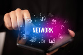 biznesmen naciskając nowoczesny typ społecznego ikony