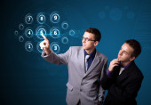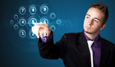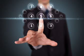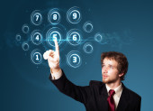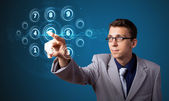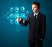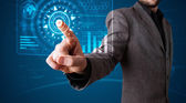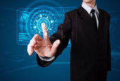 Biznesmen wciskający nowoczesne przyciski typu high tech