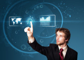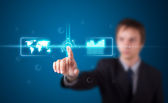 Biznesmen wciskający nowoczesne przyciski typu high tech