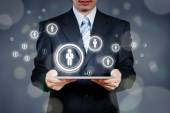 biznesmen naciskając nowoczesny typ społecznego ikony