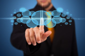 Biznesmen wciskający nowoczesne przyciski typu high tech