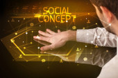 biznesmen naciskając nowoczesny typ społecznego ikony