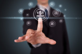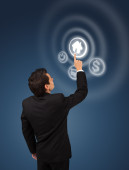 biznesmen naciskając nowoczesny typ przycisków