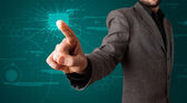 biznesmen naciskając typu prostego przycisków start