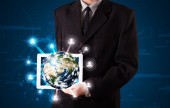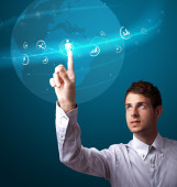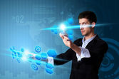 biznesmen naciskając nowoczesny typ społecznego ikony