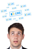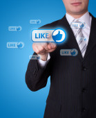 biznesmen naciskając nowoczesny typ społecznego ikony