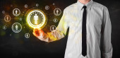 biznesmen naciskając nowoczesny typ społecznego ikony